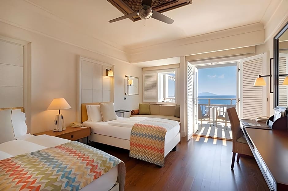 All Grand Deluxe Rooms features private balcony with panoramic sea view, air conditioning, ceiling fan, sofa, flat-screen TV and telephone. A mini-bar, espresso machine and safety deposit box are available. Private bathroom comes with shower, toilet, hairdryer, free toiletries and slippers. Linen and towels are included.